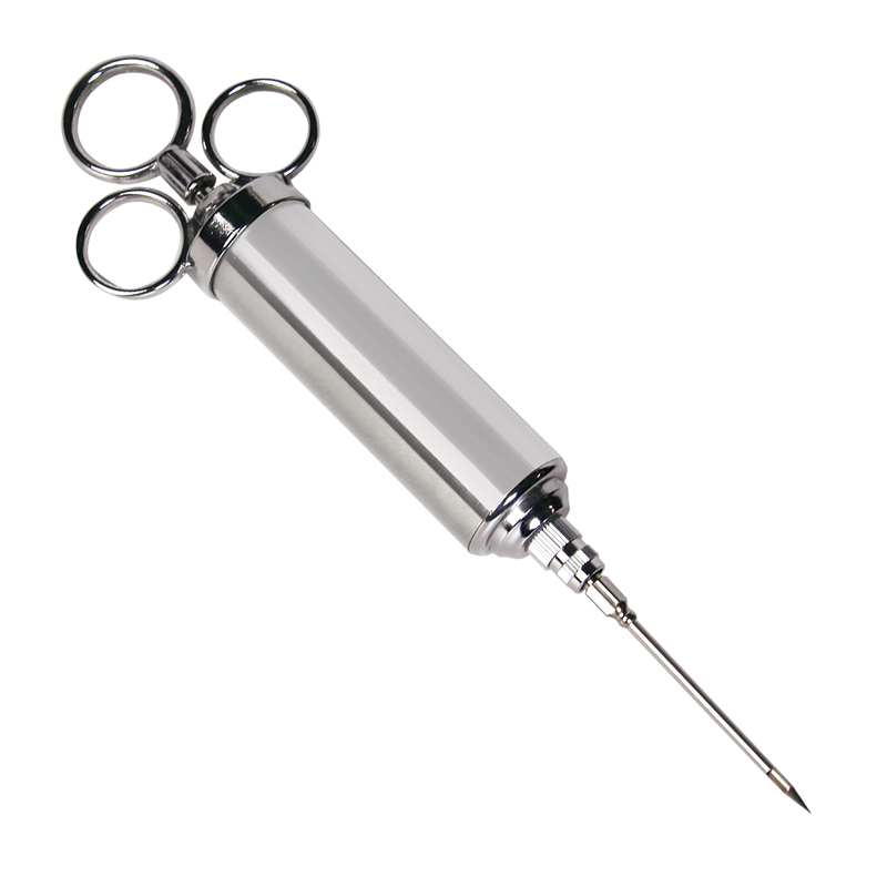 The 2.5 in / 6.5 cm needle with double-hole design provides even flow in two directions and allows you to precisely inject basting mixtures, marinades, melted butter or other liquid flavorings deep into roasts and poultry. High quality stainless-steel injector resists clogging and unscrews for easy washing