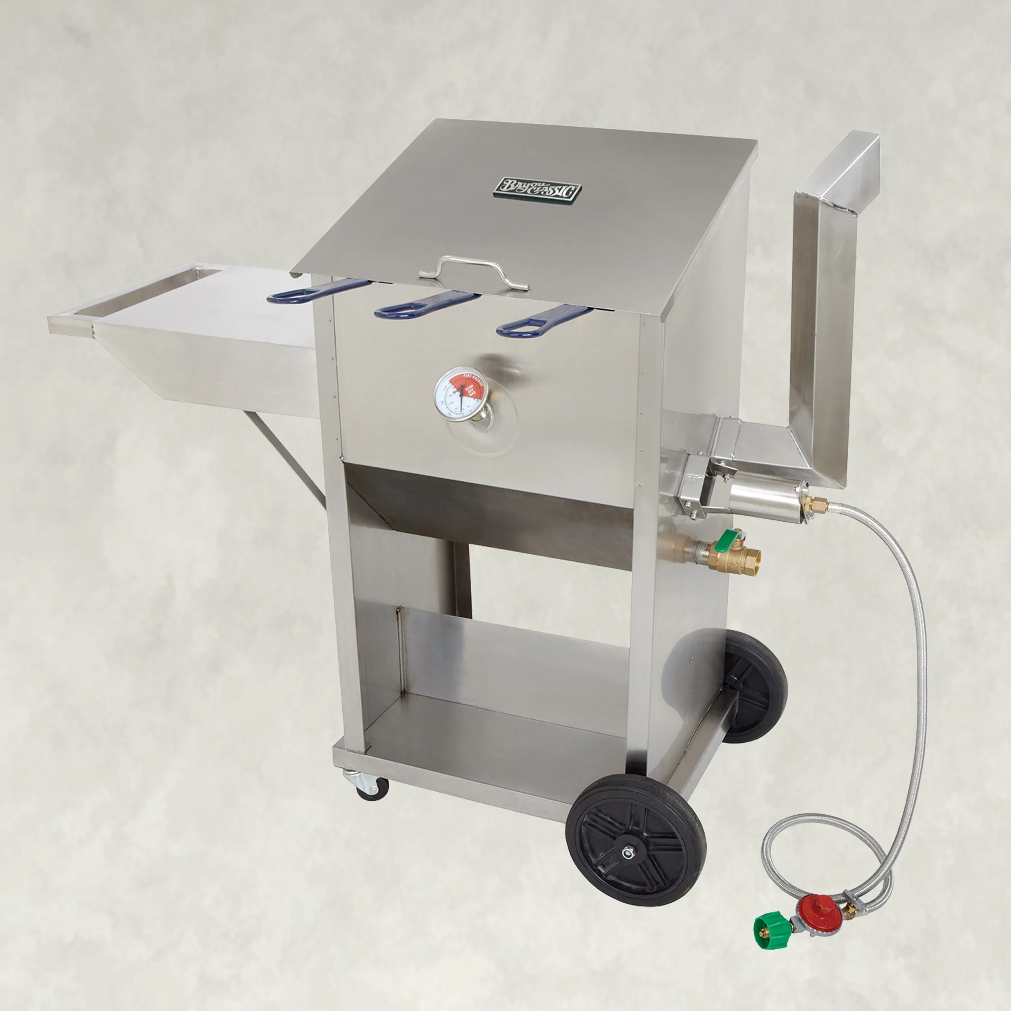Create a distinct bayou essence in your backyard with a 9-gal Stainless Bayou® Fryer. It’s a crowd feeding Triple Basket Fryer that heats from the “inside out”, not the bottom. Heat jets horizontally through a hollow vent tube immersed in cooking oil. But the real sizzle is the V-Shaped Bottom which collects loose batter below the heat source to prevent scorching. Cooking oil stays cleaner and lasts much longer. Stainless Construction and bottom Drain Valve provide easy clean-up. Passionately fry fish, chicken, fries, hushpuppies and onion rings with this innovative Bayou® Fryer. It’s all about people getting together, sharing food and good times as you become a Frequent Fryer with Bayou Classic®.