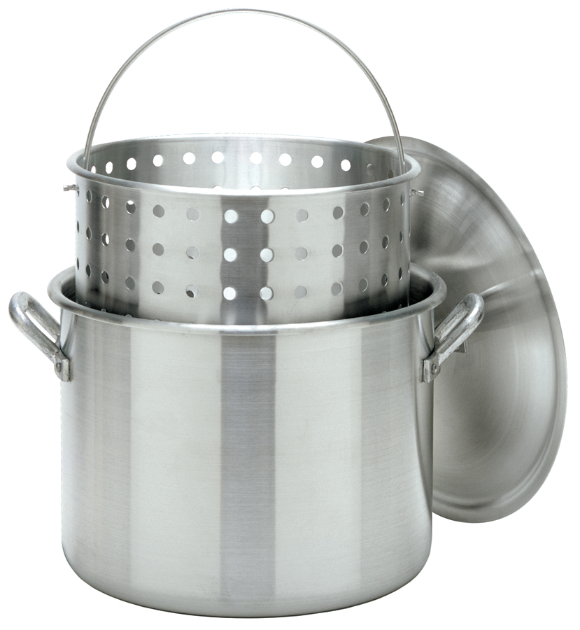 This Bayou Classic Aluminum Stockpot is 20.5″d x 16″h, Stockpot: 2.0 mm/12 Gauge, Full size Perforated Boiling Basket & Vented Lid