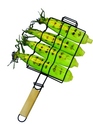 Non-stick basket with hardwood handle. Holds up to 4 cobs of corn.