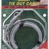 Pets like to explore the outdoors just like people. So as a pet owner you want a strong, dependable cable to assure your pet’s safety while outside. Our giant cable line features galvanized steel aircraft cable and heavy duty, nickel plated, bolt snaps. These tie outs are designed to safely secure extra large dogs.