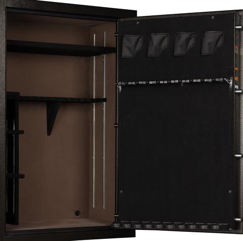 Browning’s PRM49 Primal Series Gun Safe also features a 30-minute fire rating, tested at temperatures up to 1400 degrees F on the outside. This means that your important paperwork, rifles, pistols and even some valuables will be protected in the event of a fire or a burglary. This gun safe is extra wide to store extra-long guns and has outside measurements of 58.00″ high by 41.00″ wide by 24.00″ deep. Make sure to add 2″ to the depth for the handle, lock and hinges. If you have the ability, make sure to bolt this safe to a solid surface using pre-drilled anchor holes.