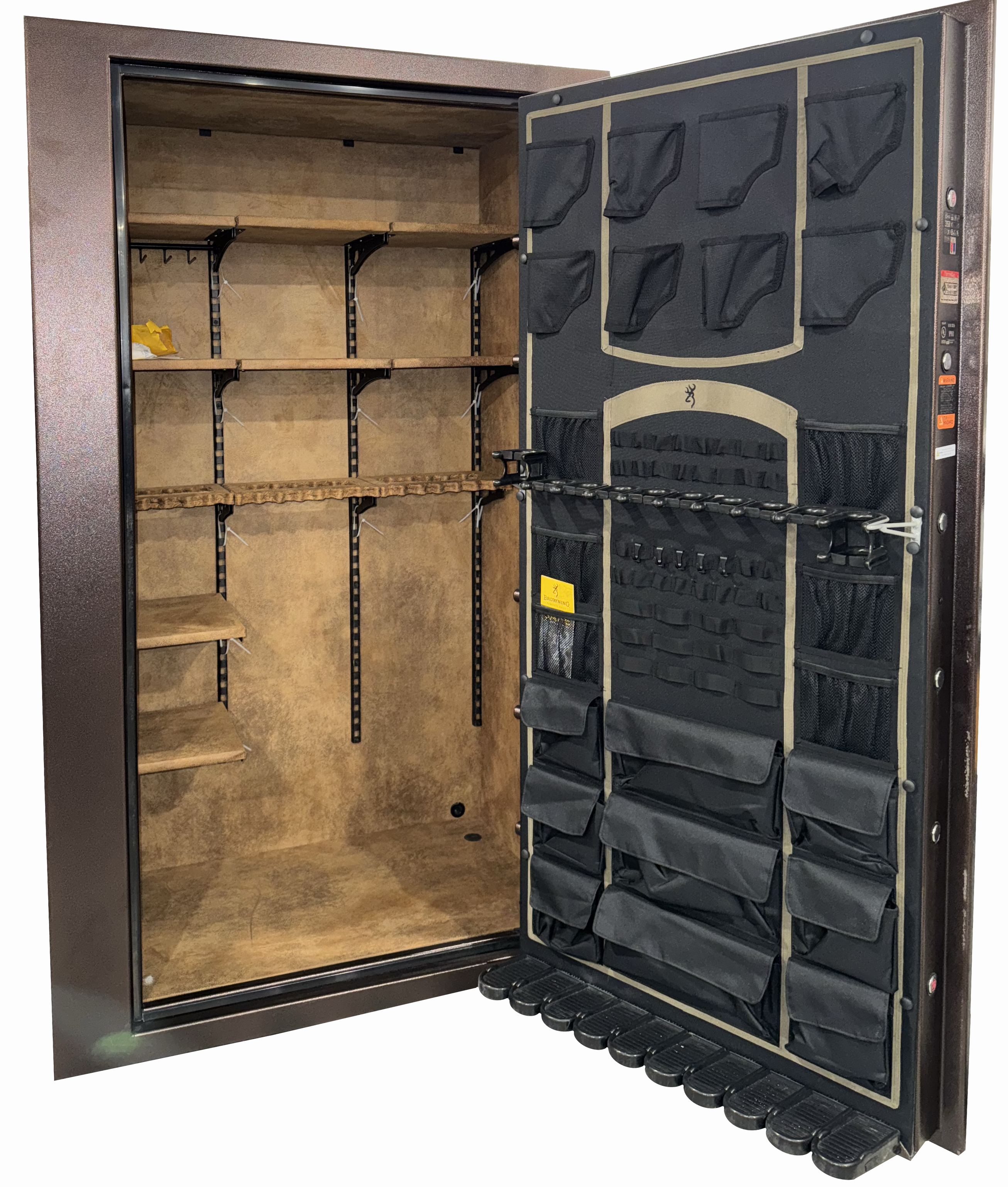 With the Rawhide’s faux leather lining and generous capacity—space for up to 49 long guns—you can show off your impressive collection and your rugged style in one premium safe. Your firearms are secured behind 11-Gauge steel, 14 3-way locking bolts, Pry-Stop End Bolts, and 1,550° ThermaBlock fire protection, it’s a powerful barrier that stands between you and disaster.