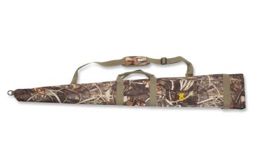 The Browning Bear River Floater Flexible Gun Case – Max4 Camo 52in is made of a 600 denier polyester shell with a nylon lining. The Browning Gun Storage Case also has a closed-cell foam padding with a hook and loop flap closure and a polyester trim and binding.