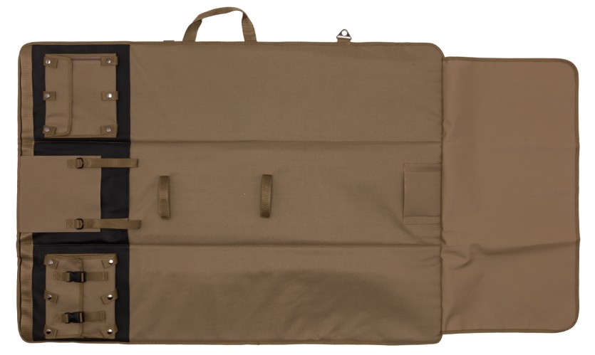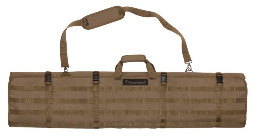 Browning Drag Mat – Military-inspired design combines a protective mat for long range precision shooters and a scoped rifle case. PALS/MOLLE webbing for accessories, backpack straps/carry handles, accessory pouches.