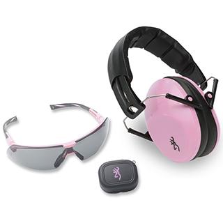 •Buck Mark shooting glasses with smoke polycarbonate lenses and light pink frames offer eye protection and enhanced target visibility in bright conditions