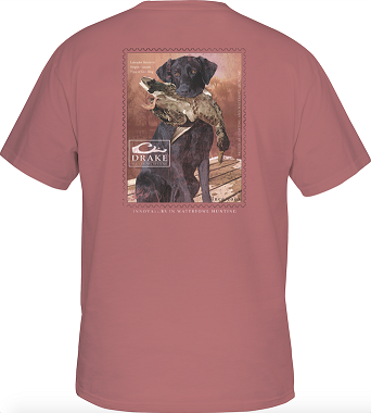Lab Waterfowl Stamp on back and the DRAKE logo on front pocket.