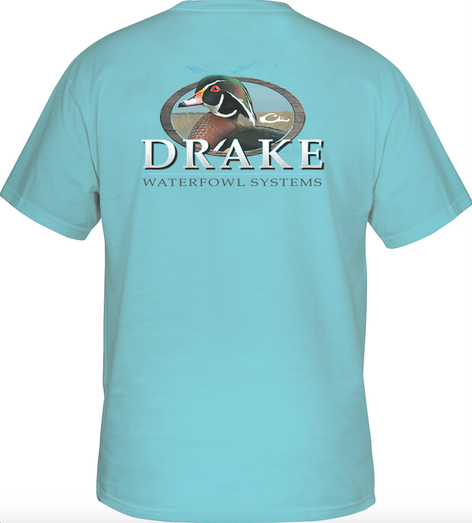 Squealer T-Shirt with Wood Duck on back and the DRAKE logo front pocket.
